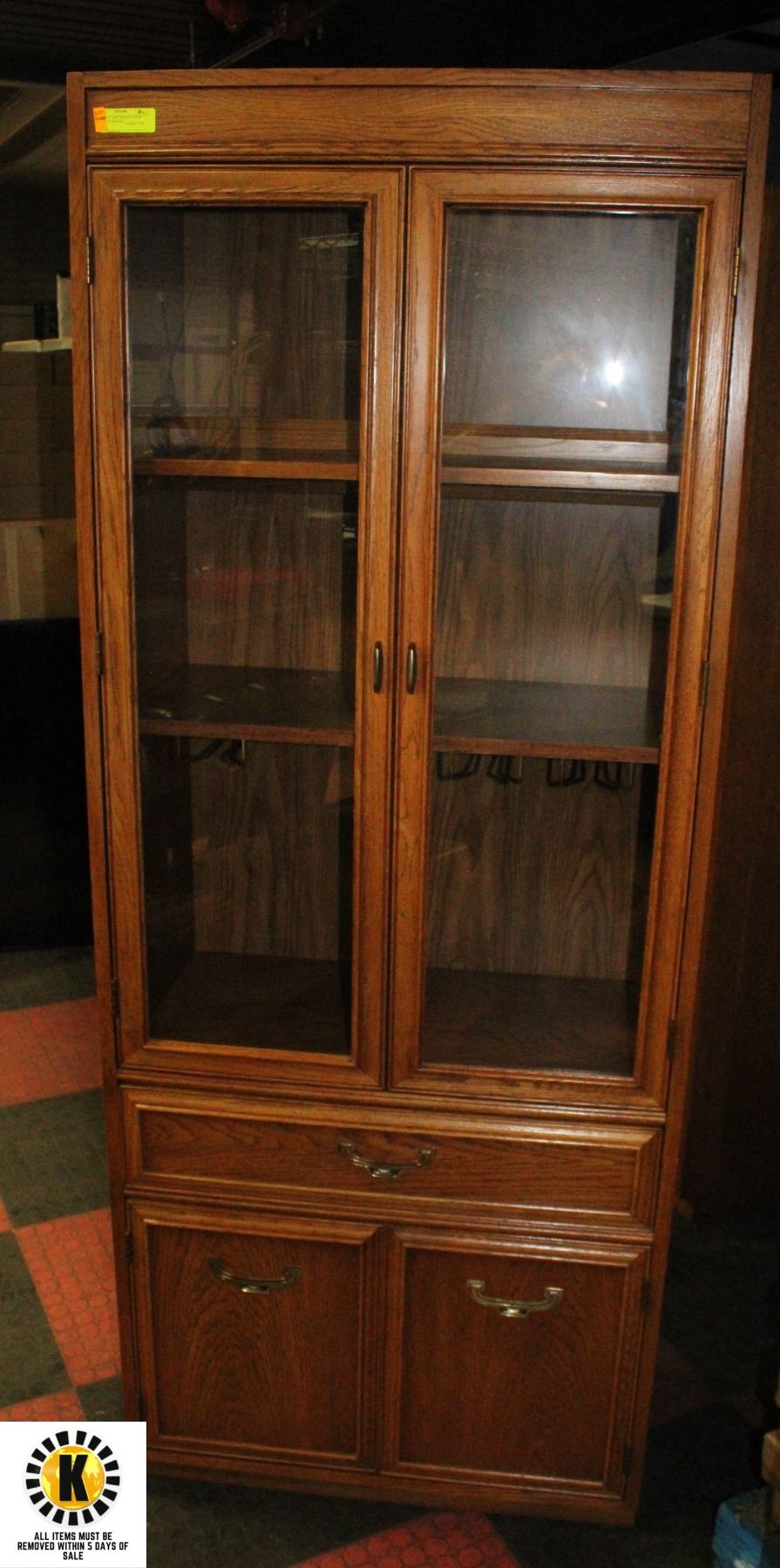 VINTAGE OAK CABINET- GLASS DOORS & DRAWER
