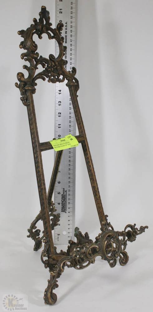 VINTAGE ORNATE BRASS EASEL /PICTURE STAND 22  TALL