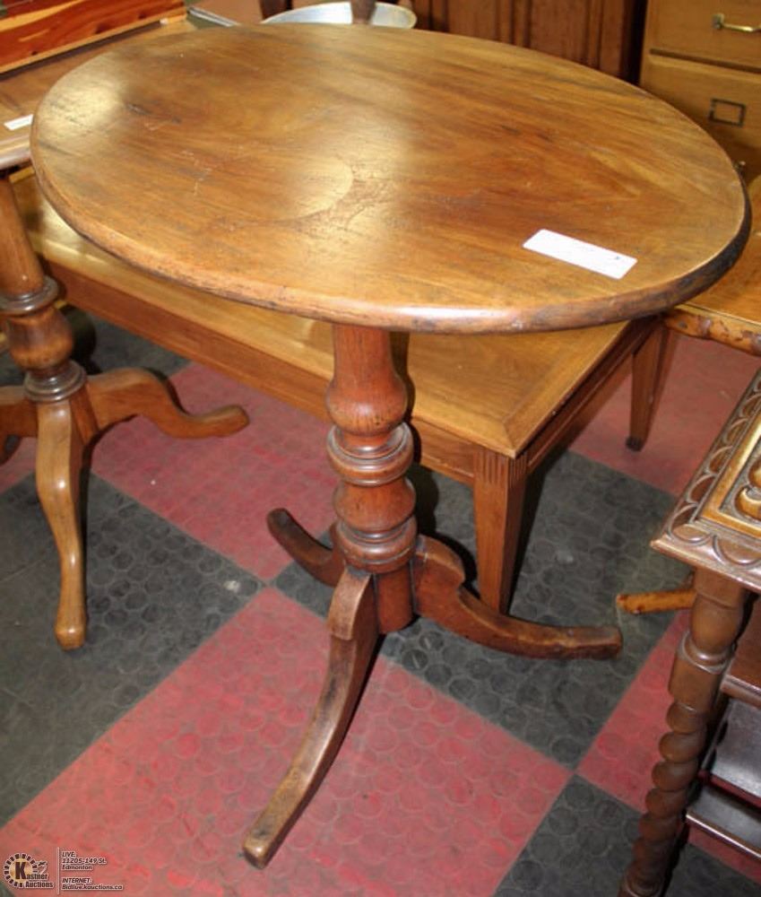 VINTAGE OVAL WOOD SIDE TABLE 26X18X29