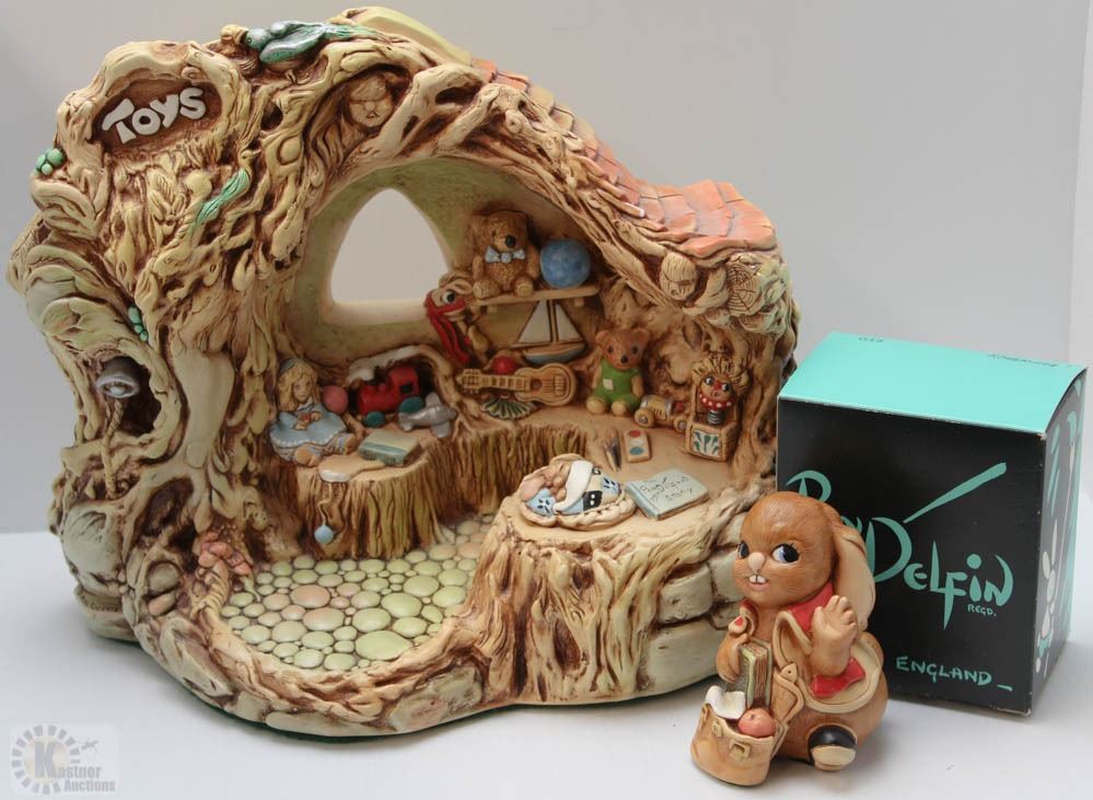 TOYSHOP IS 10.5"X9". COMES WITH ORIGINAL NEW BOY BOX. HAS ORIGINAL PENDELFIN STICKERS.