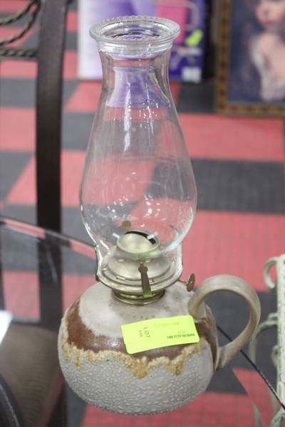 VINTAGE POTTERY OIL LAMP (CRACKED)
