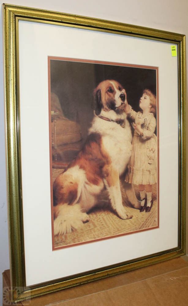 VINTAGE PRINT OF A YOUNG GIRL WITH HER DOG 24"X18