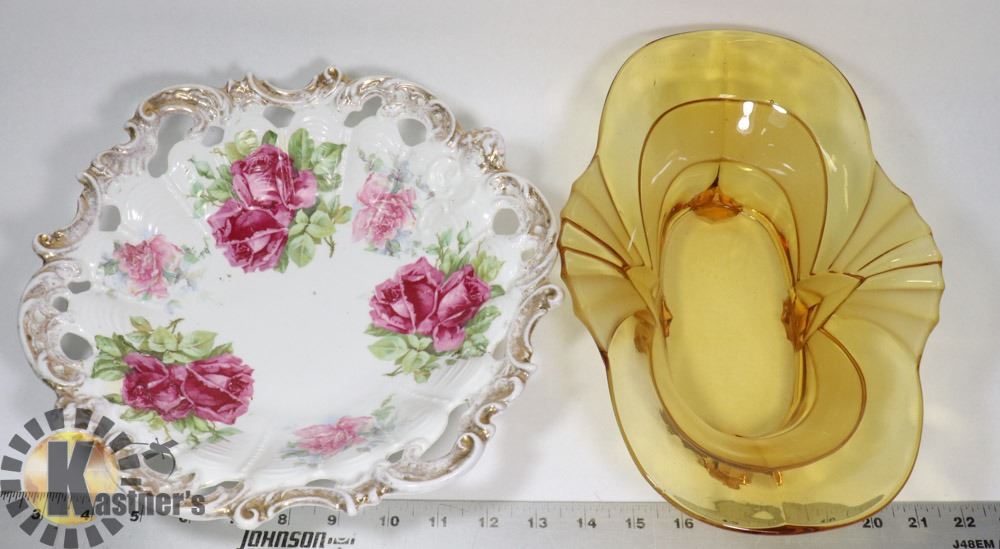 FLORAL SERVING BOWL MADE IN GERMANY/YELLOW DISH. COLLECTIBLES
