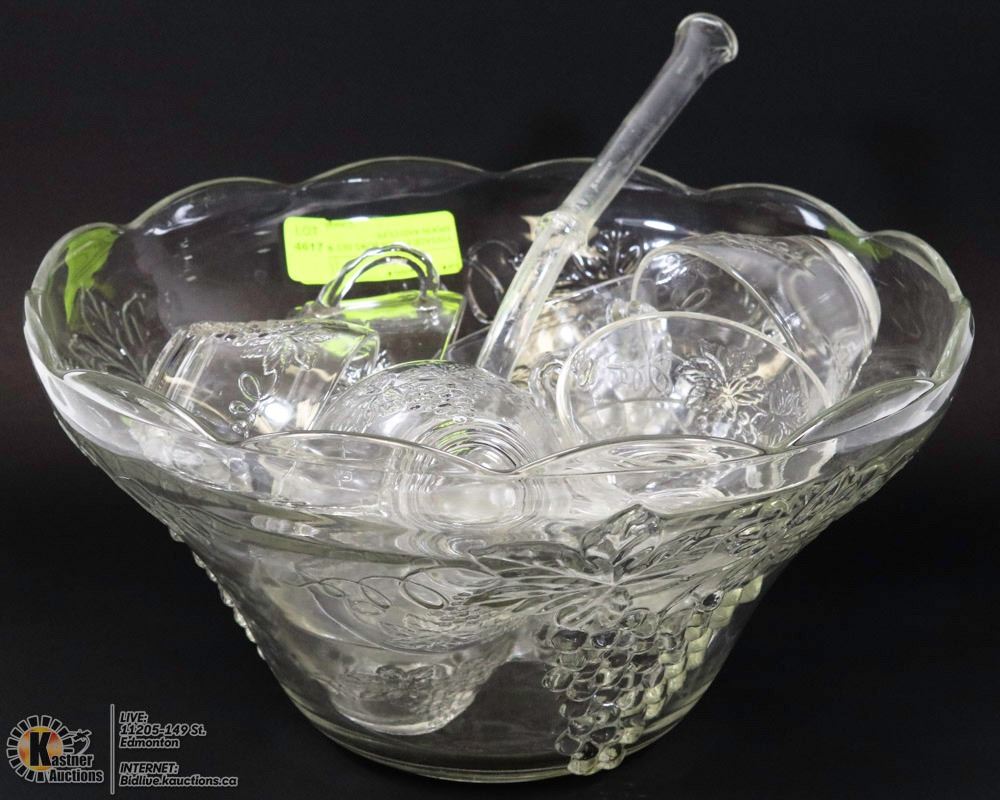 VINTAGE PUNCH BOWL SET WITH SPOON AND CUPS