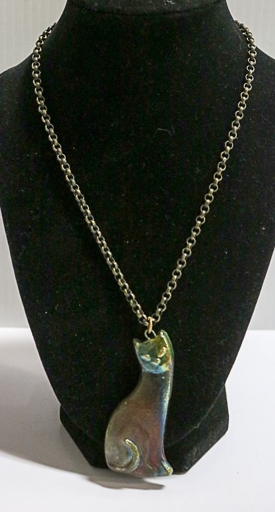 VINTAGE RAKU CAT NECKLACE LONG BANISHED HEAVY LINK