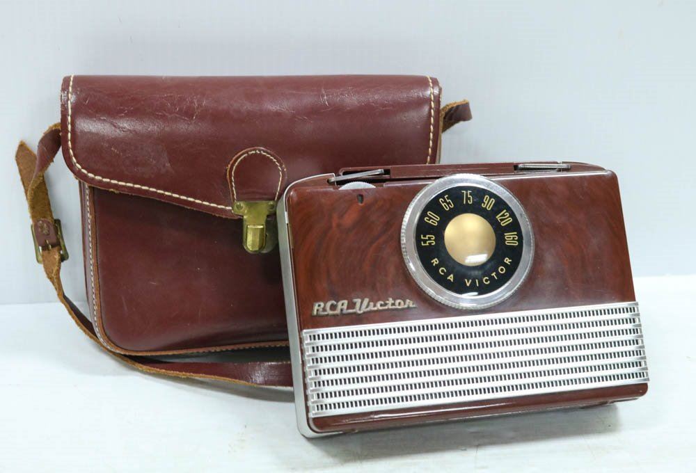 VINTAGE RCA PORTABLE RADIO IN LEATHER CASE