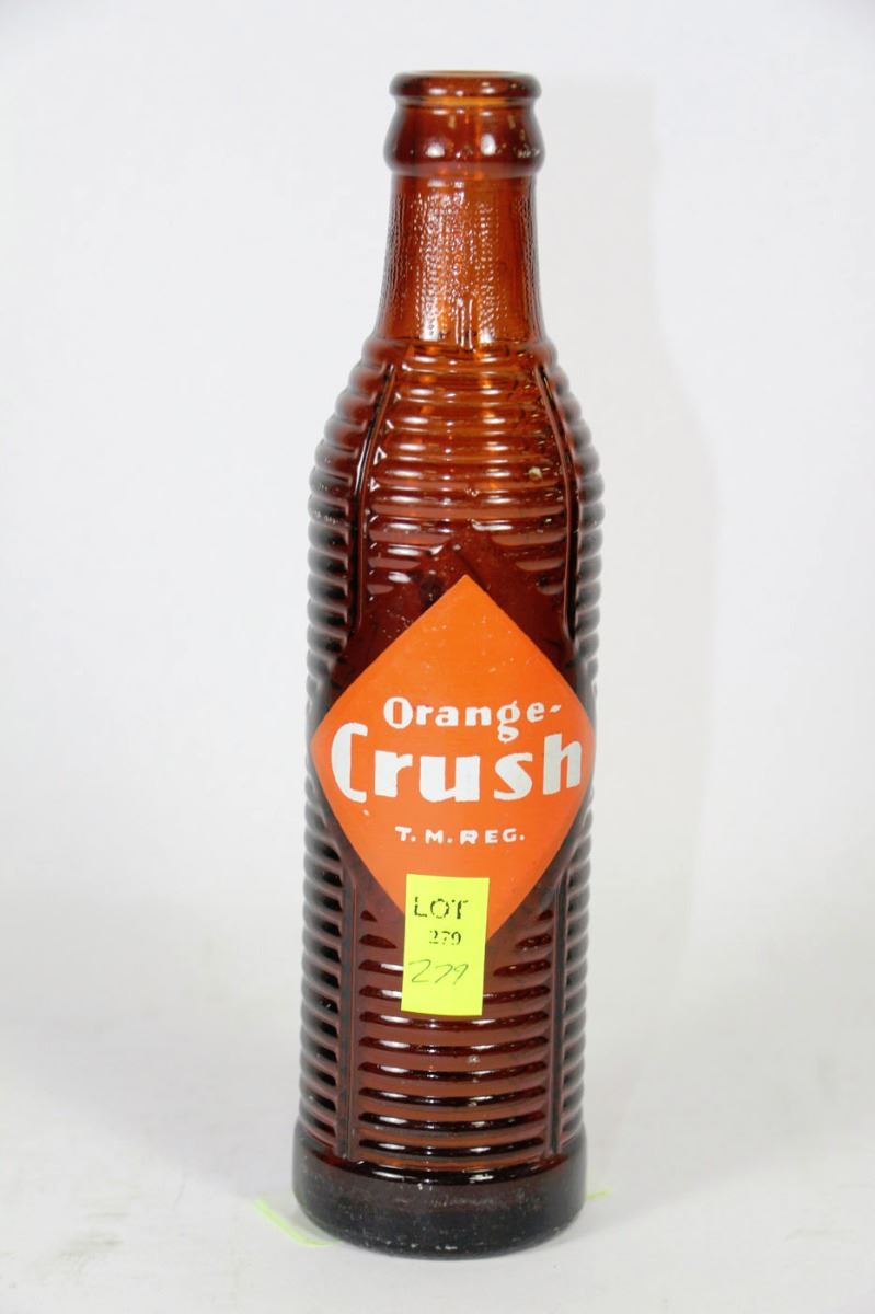 VINTAGE RIBBED BROWN GLASS ORANGE CRUSH BOTTLE
