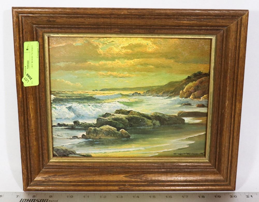 SHORE" OIL PAINTING SIGNED 11 X 13. COLLECTIBLES
