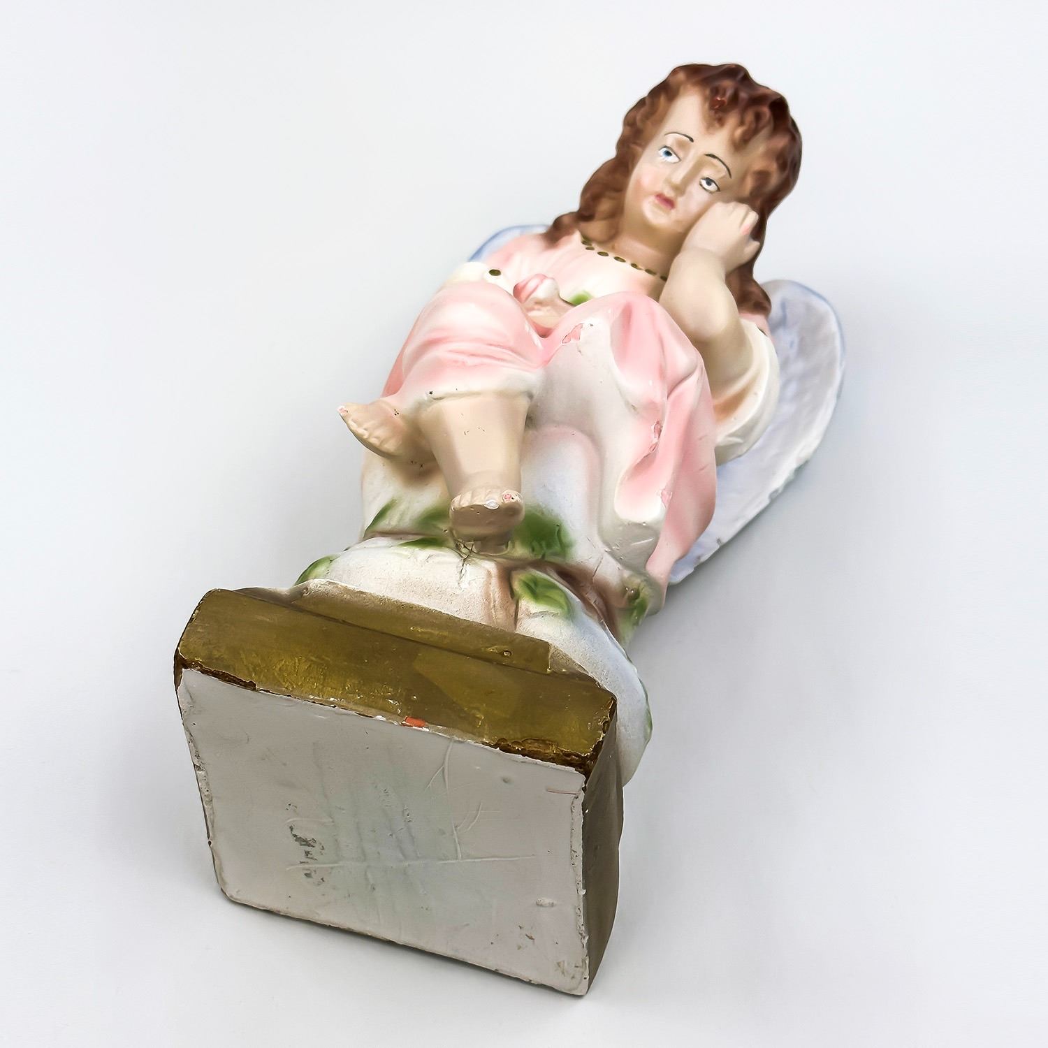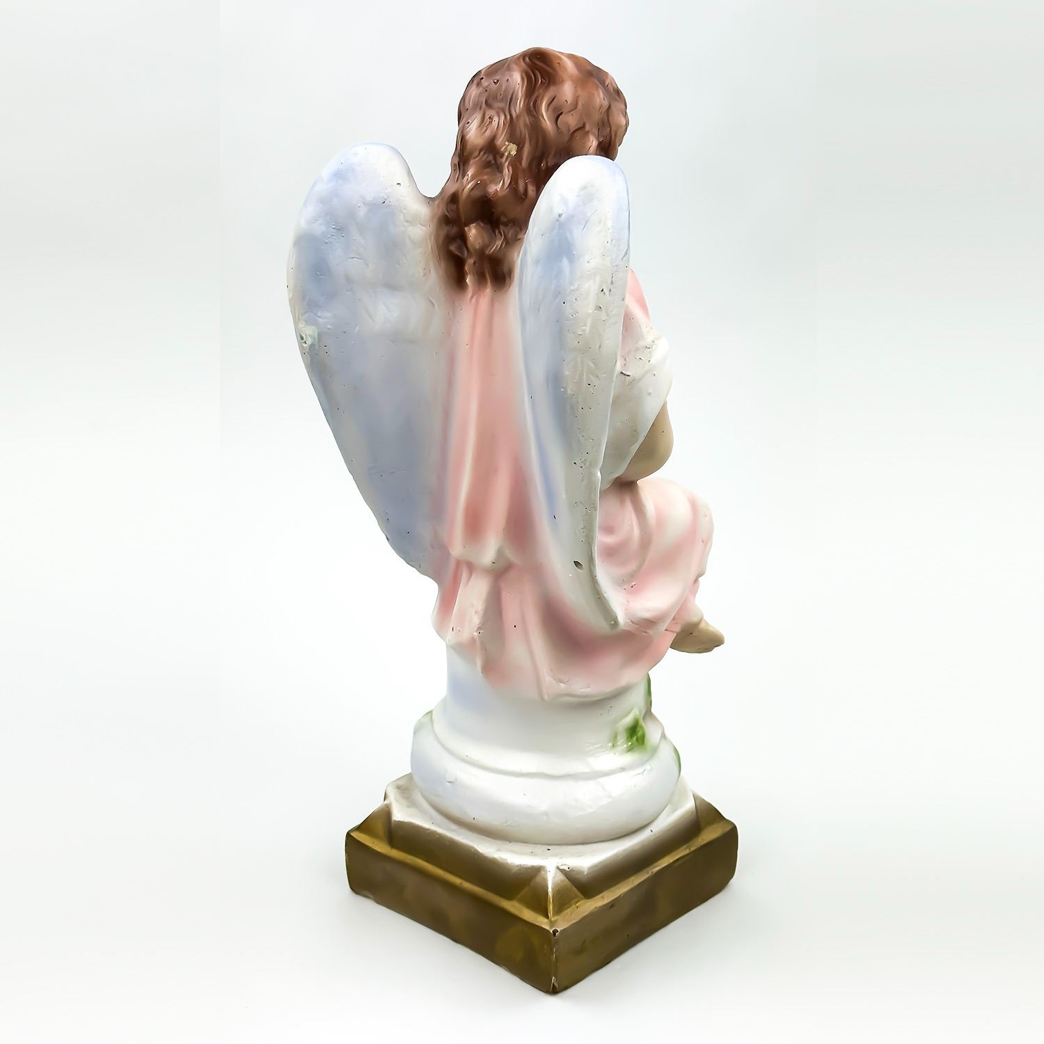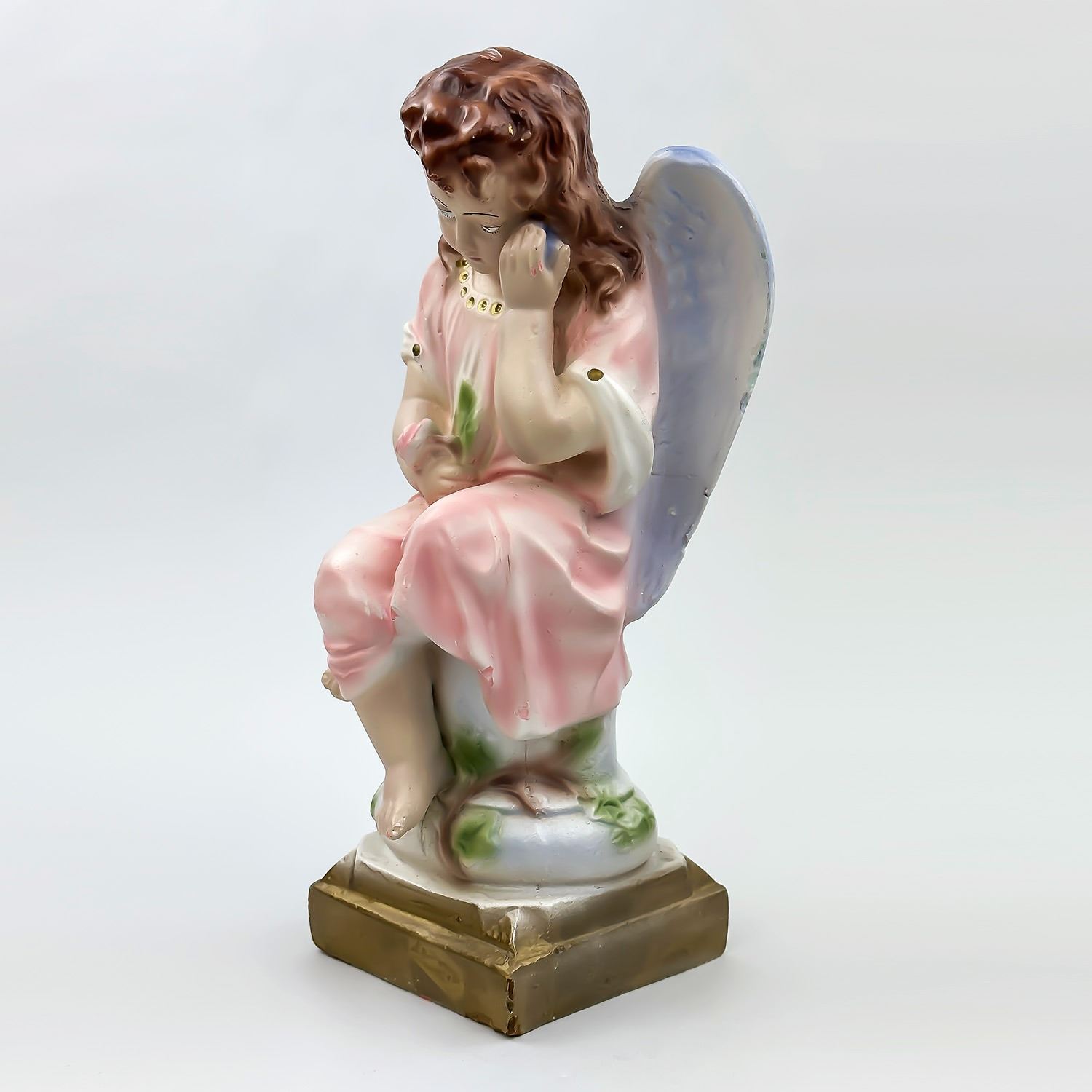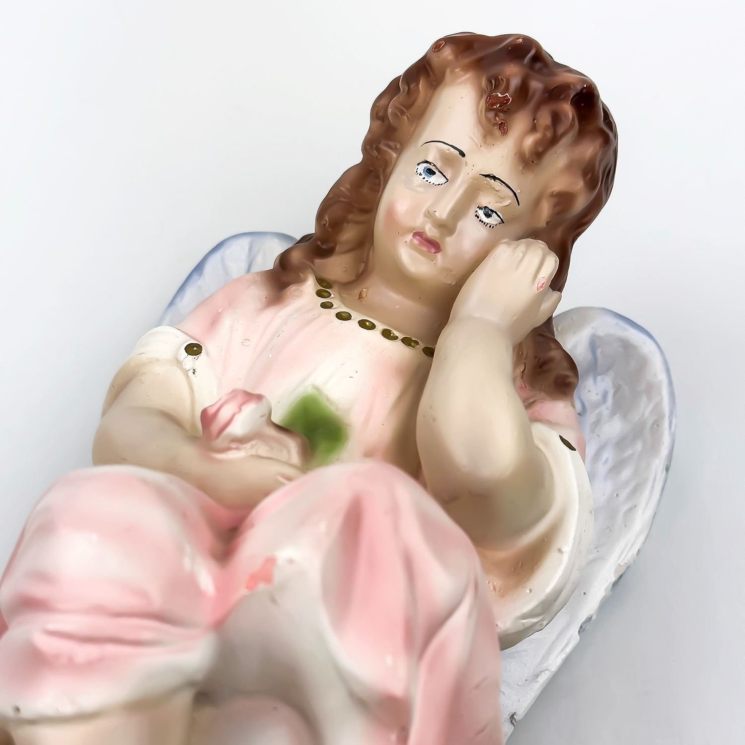 #8014 - HAND CRAFTED AND PAINTED ANGEL FIGURE FIGURINE. EXACT AGE AND ORIGIN UNKNOWN. SAD ANGEL GIRL WITH WINGS HOLDING A ROSE. SOME MINOR SURFACE IMPERFECTIONS, BUT NOT AT ALL BAD. MEASURES: 11” (28 CM) TALL BY 5.25” (13.5 CM) WIDE AT HER WINGSAND***ITEM(S) LOCATED IN LETHBRIDGE ALBERTA. FREE TRANSPORT TO EDMONTON OFFICE AVAILABLE FOR THIS AUCTION. WORLDWIDE SHIPPING IS AVAILABLE FOR ALL ITEMS