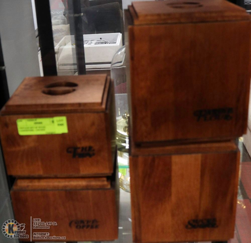VINTAGE SET OF WOOD CANNISTERS - UNUSED