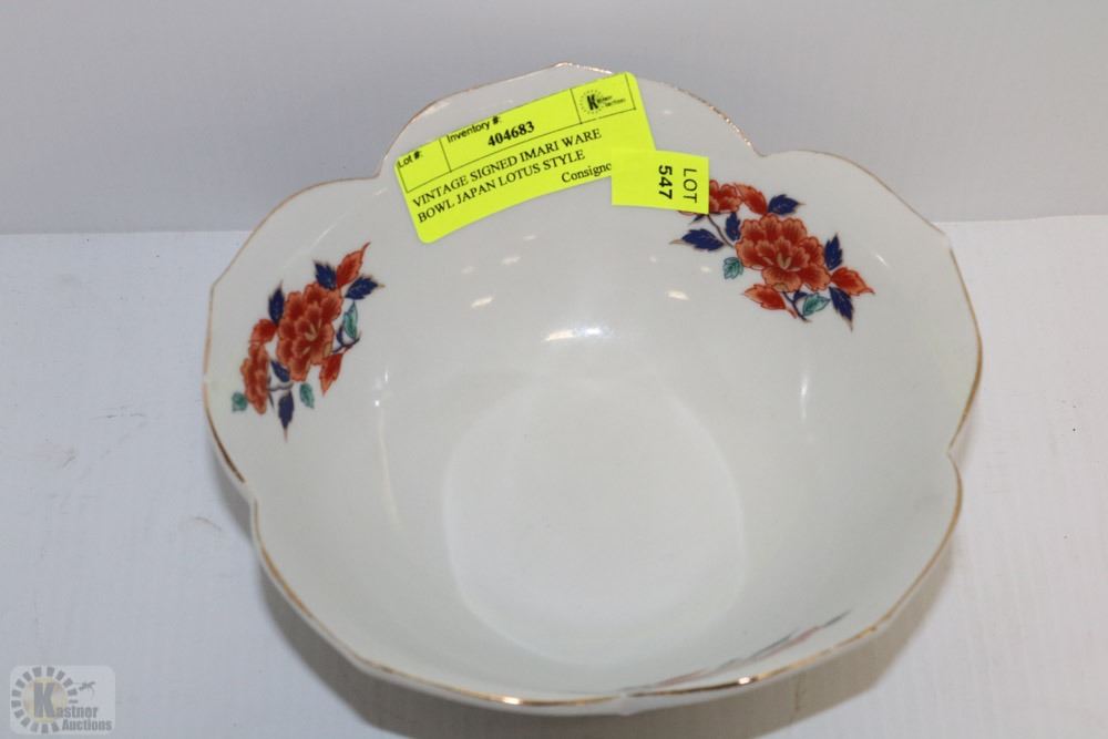VINTAGE SIGNED IMARI WARE BOWL JAPAN LOTUS STYLE