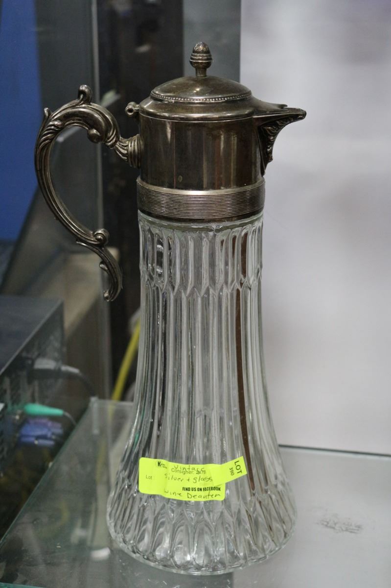VINTAGE SILVER AND GLASS WINE DECANTER