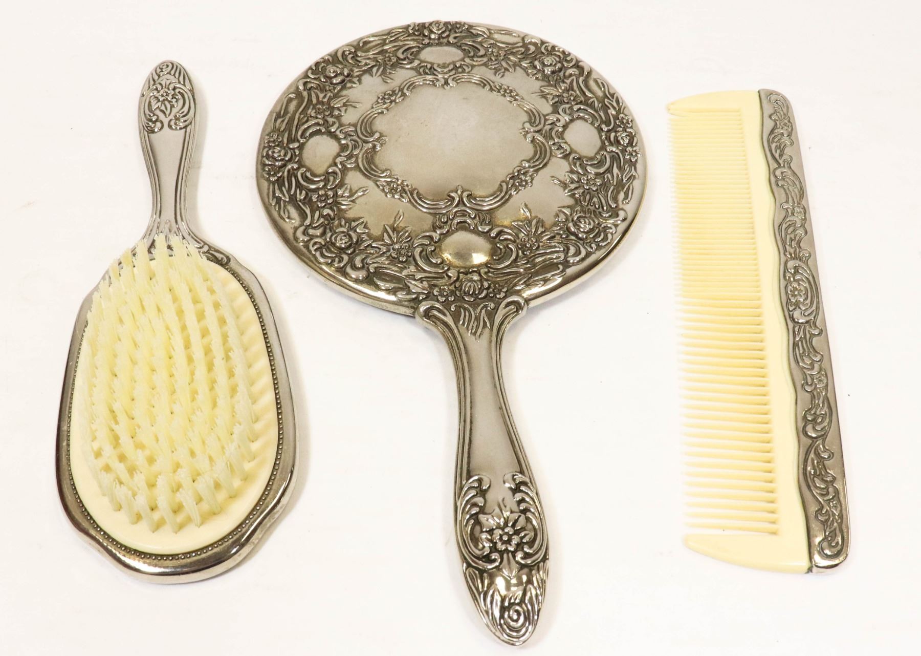 VINTAGE SILVER PLATE VANITY 3 PC SET