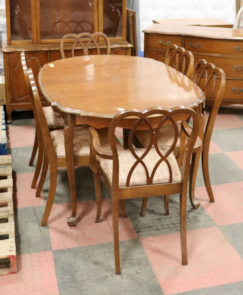 LEAVES (12" EACH), 6 CHAIRS, HUTCH (46"X14"X69") & SIDE BOARD (60"X20"X32"). FURNITURE.