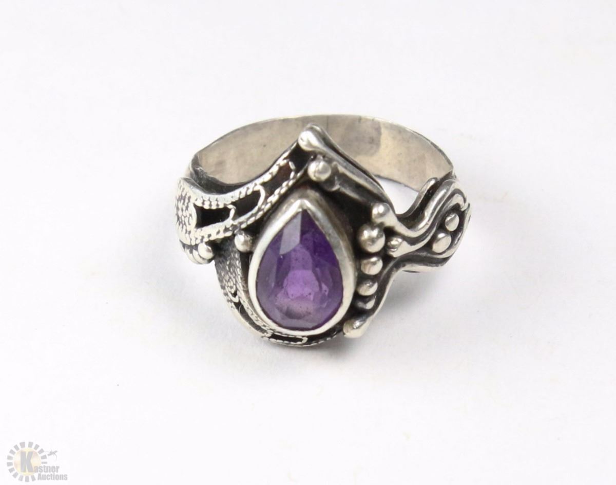 VINTAGE STERLING SILVER AMETHYST RING - SIZE 5
