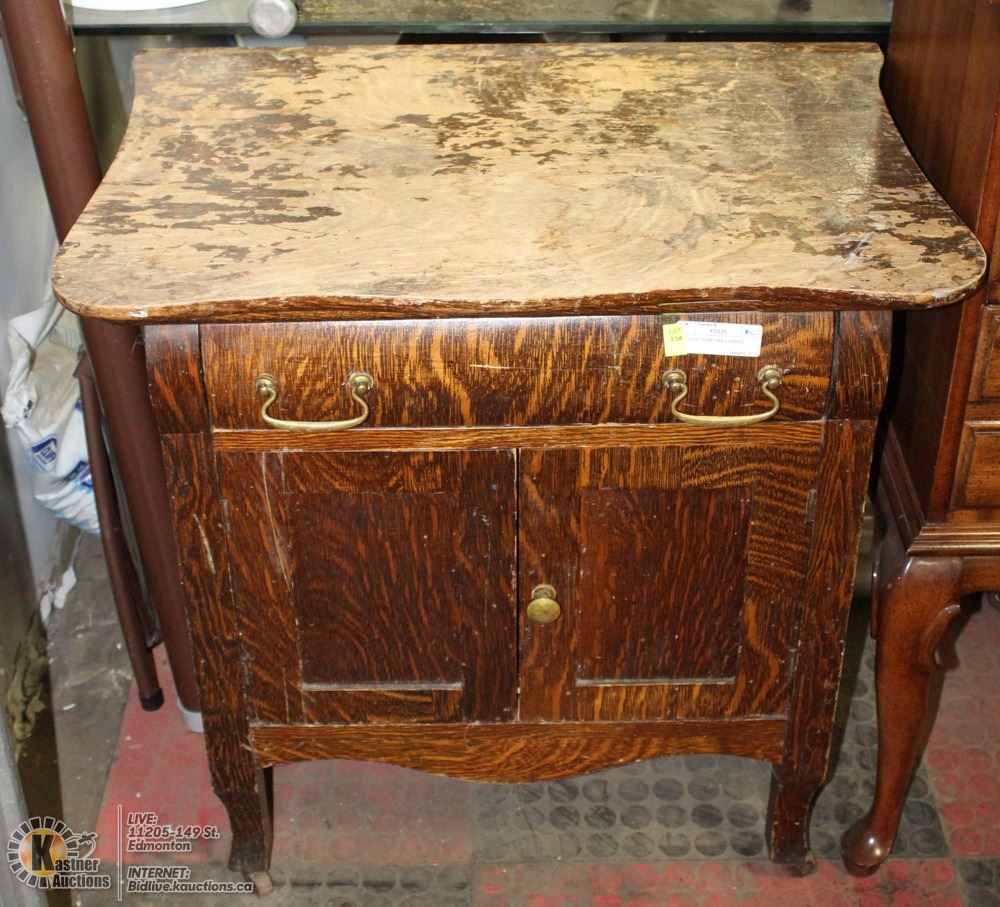 27"X18"X29:"H. TOP NEEDS TO BE RESTAINED/PAINTED