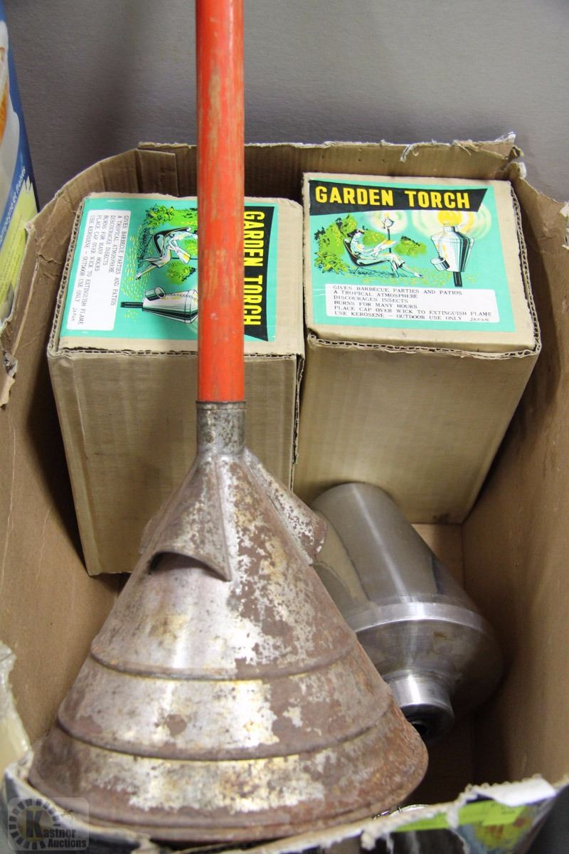 VINTAGE TORCH WITH 2 GARDEN TORCHES STAINLESS