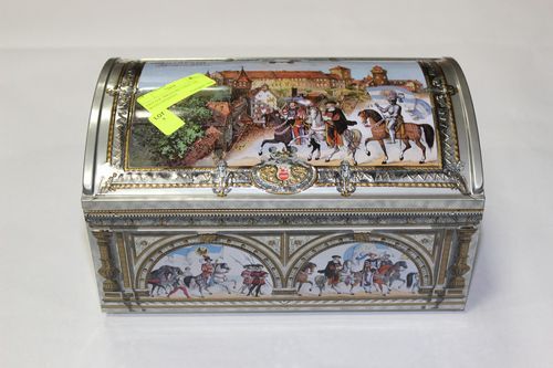 VINTAGE TREASURE CHEST TIN WITH CONTENTS