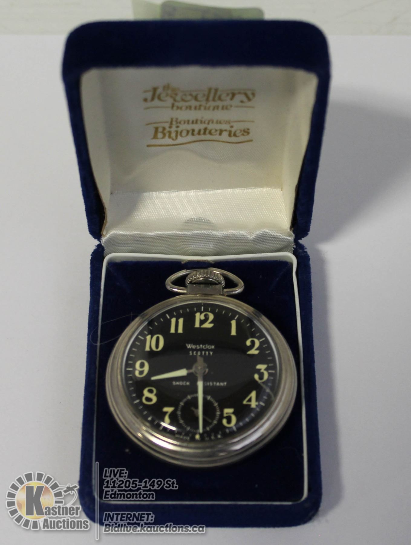 VINTAGE WESTCLOX SCOTTY POCKET WATCH WITH BOX