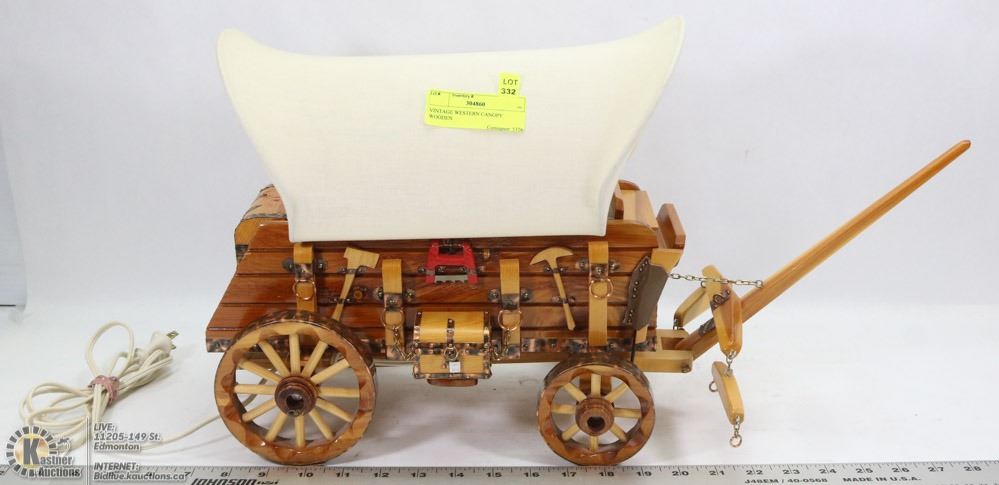 WAGON TABLE LAMP (TESTED/WORKING). COLLECTIBLES