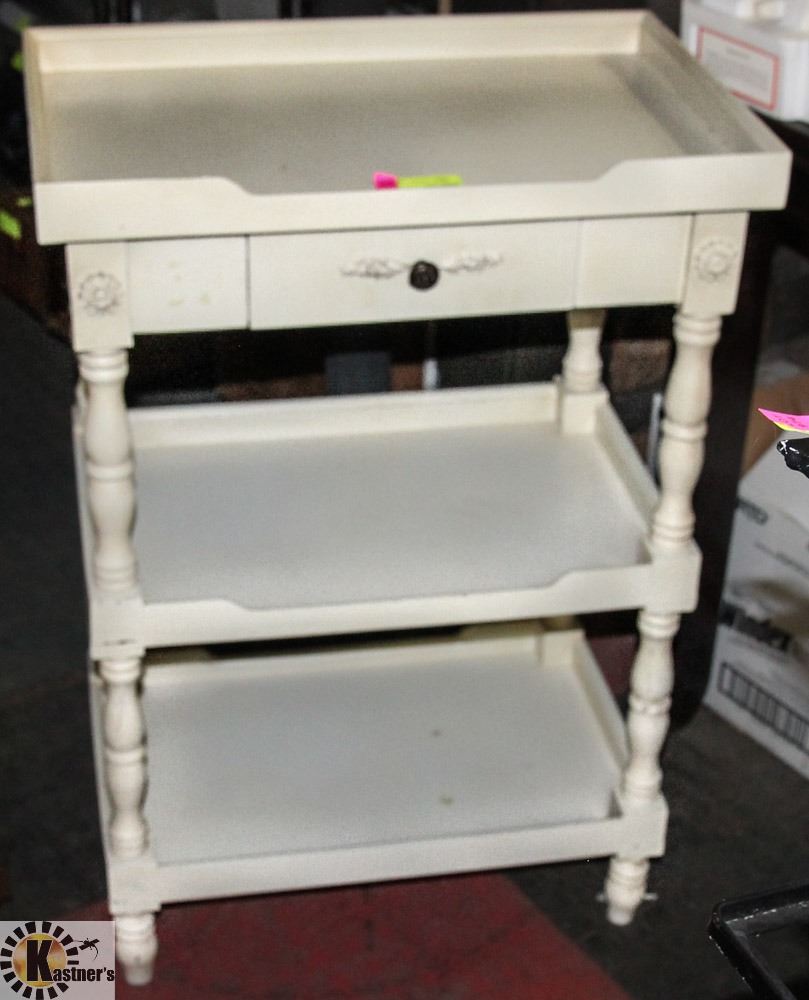 VINTAGE WHITE STAND, 22.5"X15"X32".