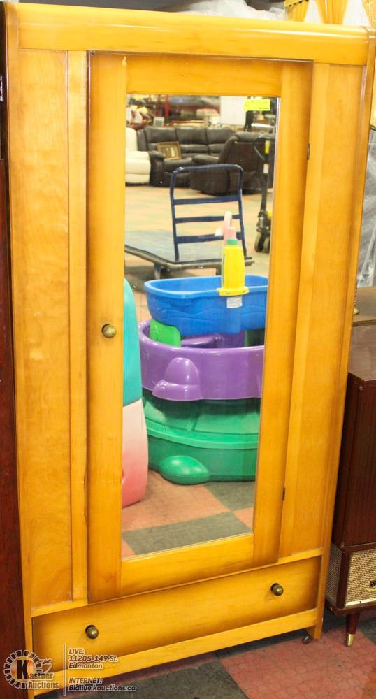 VINTAGE WOOD 36"X21"X70" WARDROBE WITH MIRROR