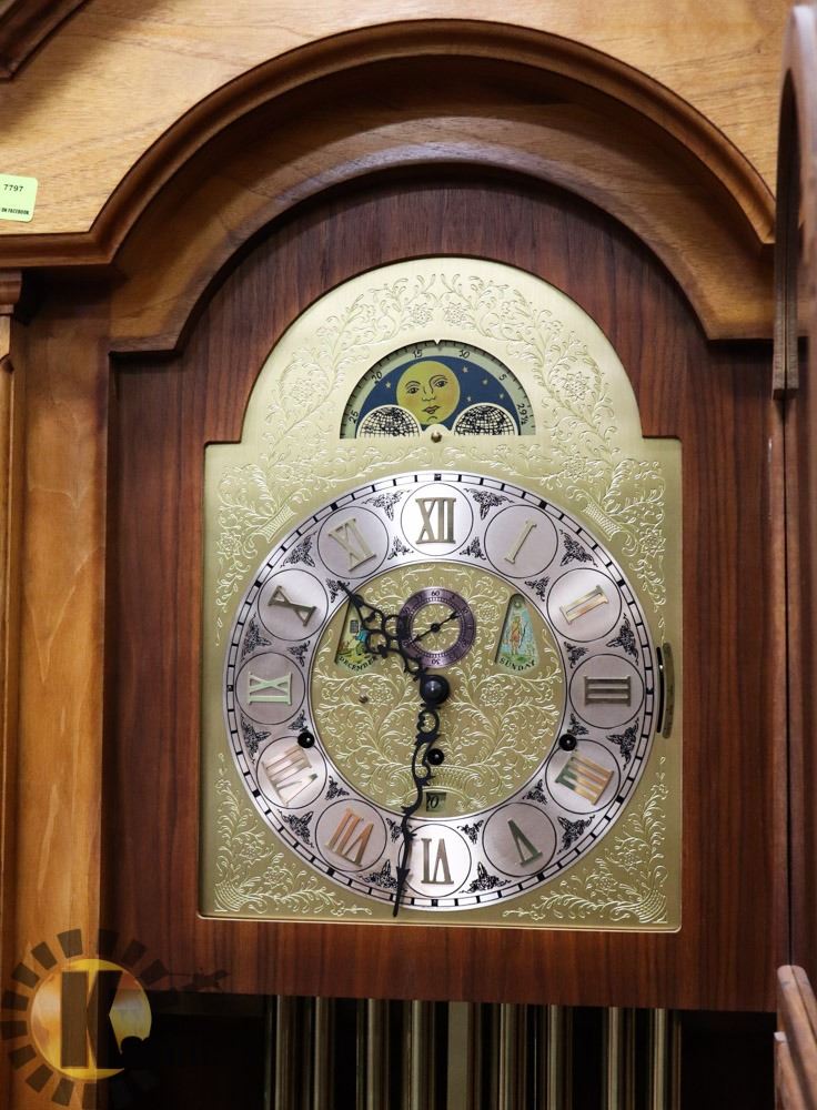 VINTAGE WOOD 7' TALL GRANDFATHER CLOCK. FURNITURE