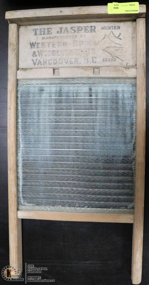 VINTAGE WOOD AND GLASS WASHBOARD