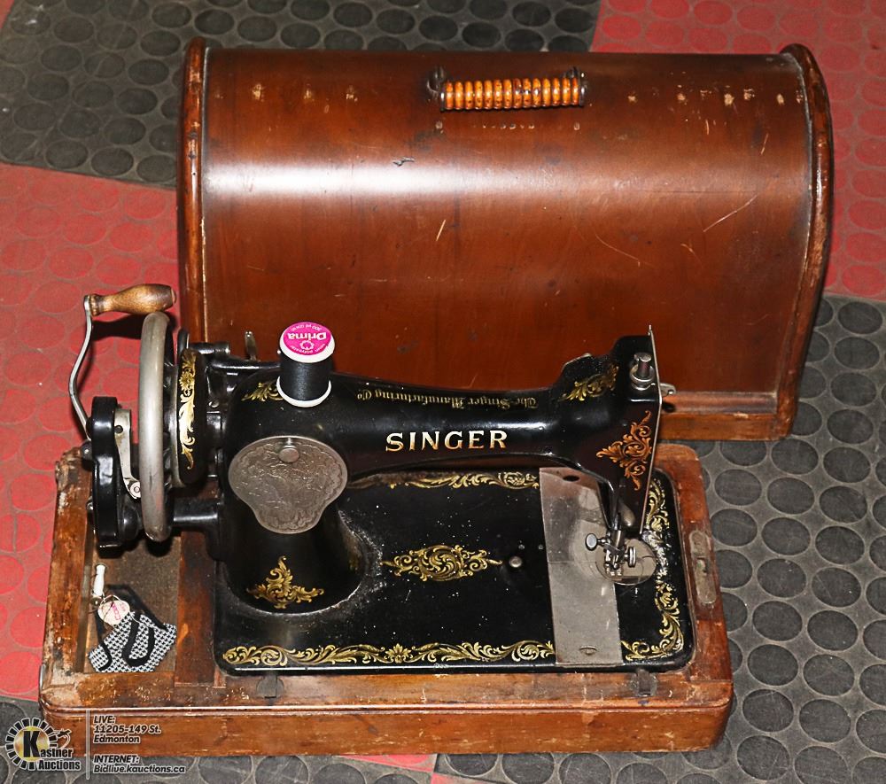 VINTAGE WOOD CASE SINGER SEWING MACHINE