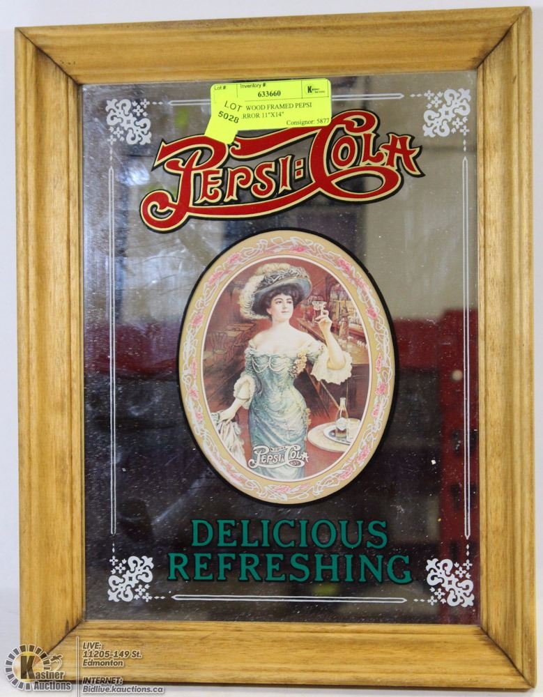 VINTAGE WOOD FRAMED PEPSI COLA MIRROR 11"X14"