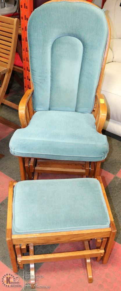 VINTAGE WOOD ROCKING CHAIR AND OTTOMAN