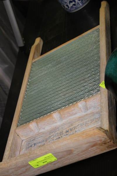 VINTAGE WOODEN & GLASS WASHBOARD