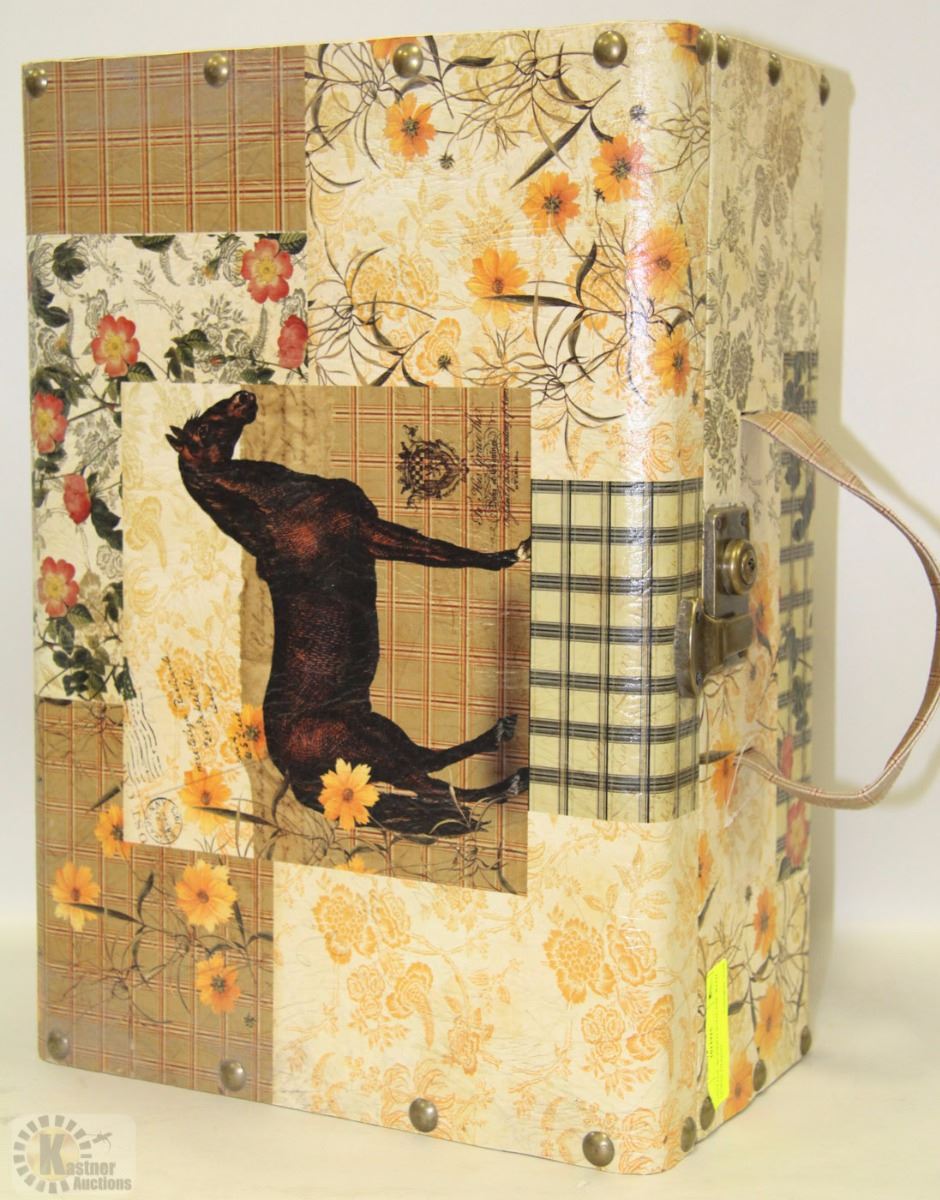 VINTAGE WOODEN SUITCASE WITH HORSE DESIGN