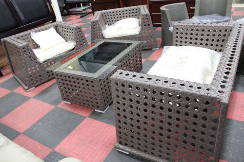VINYL RATTAN SET W/LOVESEAT, 2 CHAIRS,COFFEE TABLE