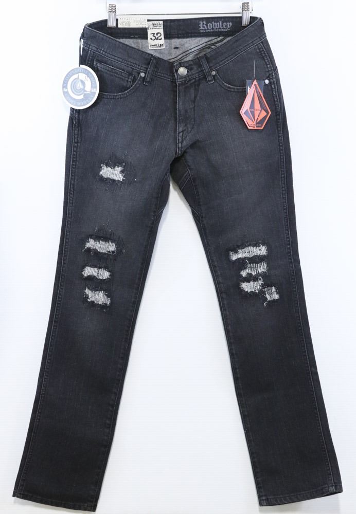 VOLCOM MEN'S TIGHT FIT BLACK DISTRESSED JEANS