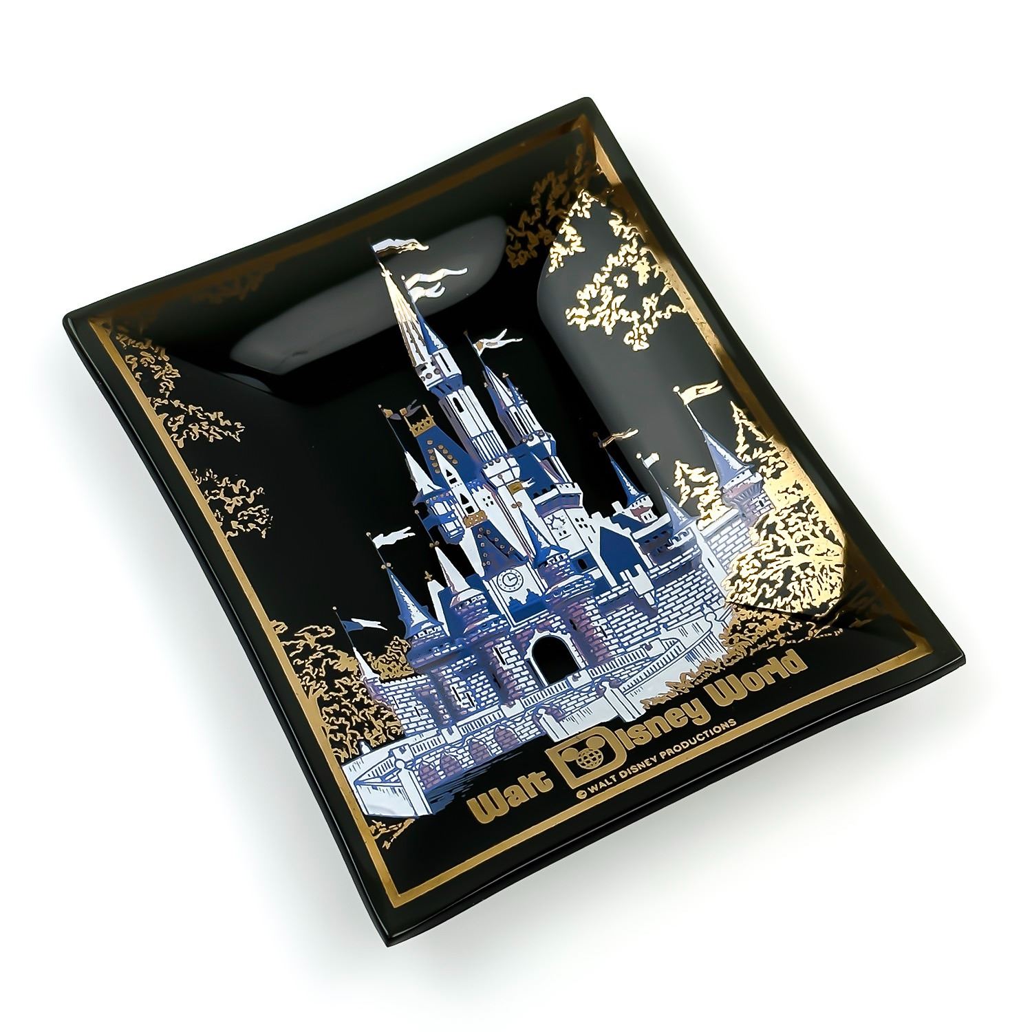 #8303 - VINTAGE 70’S WALT DISNEY WORLD CASTLE - WALT DISNEY PRODUCTIONS SMOKE GLASS SOUVENIR ADVERTISING TRAY OR DISH. MEASURES: 4.75” (12 CM) HIGH BY 4” (10 CM) WIDE
