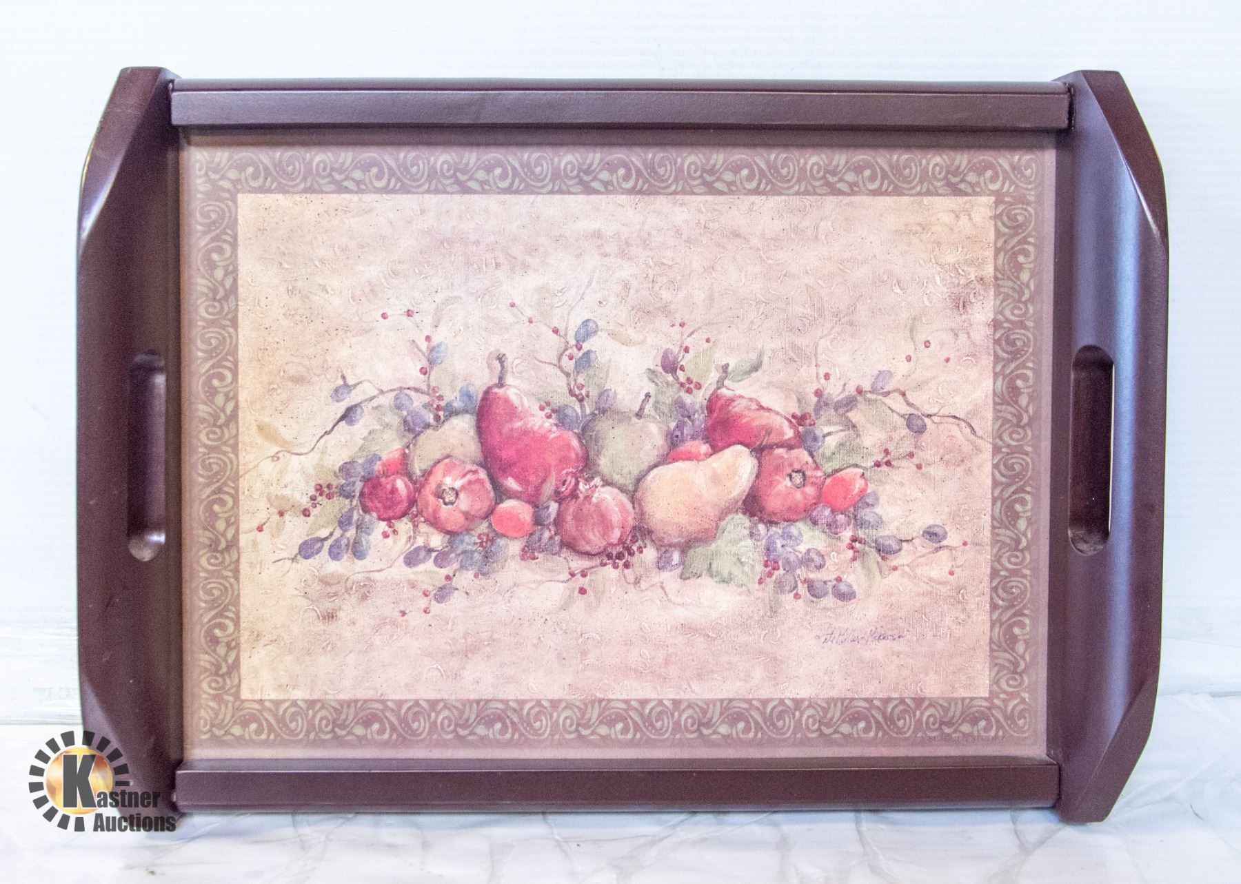 VTG. WOOD FRUIT PRINT SIGNED PALLET TRAY