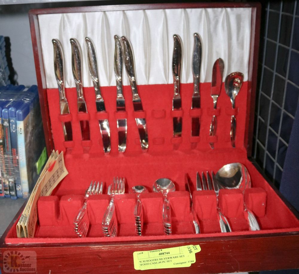 W.M ROGERS SILVERWARE SET IN WOOD CASE,44 PC SET