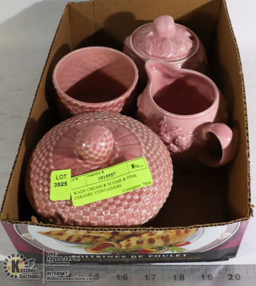 WADE CREAM & SUGAR & PINK CERAMIC CONTAINERS
