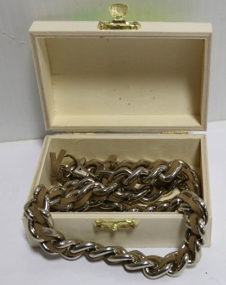 WALLET CHAIN WITH INLAID LEATHER IN BOX