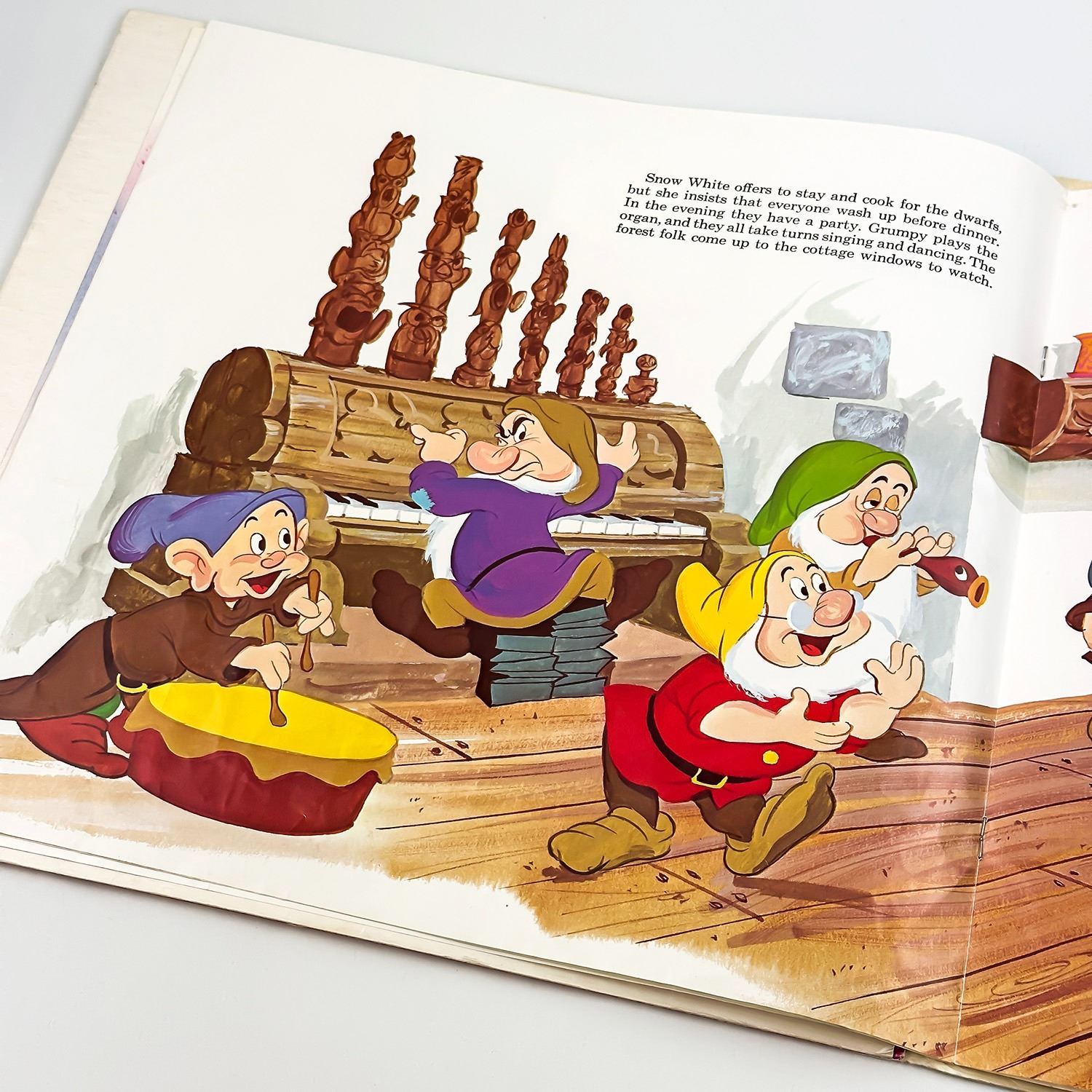 #8445 - VINYL LP GATEFOLD RECORD ALBUM. STORY & SONGS FROM SNOW WHITE AND THE SEVEN DWARFS. RECORD SLEEVE HAS SURFACE ISSUES. COMPLETE ILLUSTRATED BOOK INSIDE - PAGES DETACHED FROM STAPLES AND SHOW HANDLING WEAR. DISNEYLAND RECORDS ST 3906