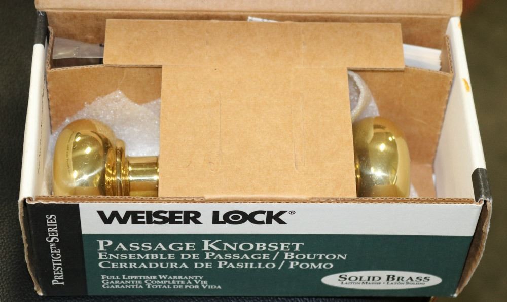WEISER LOCK PASSAGE KNOBSET, SOLID BRASS