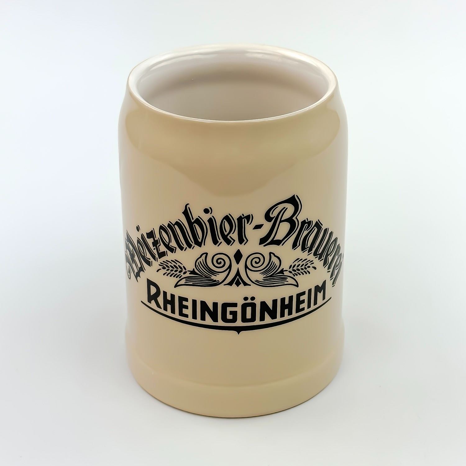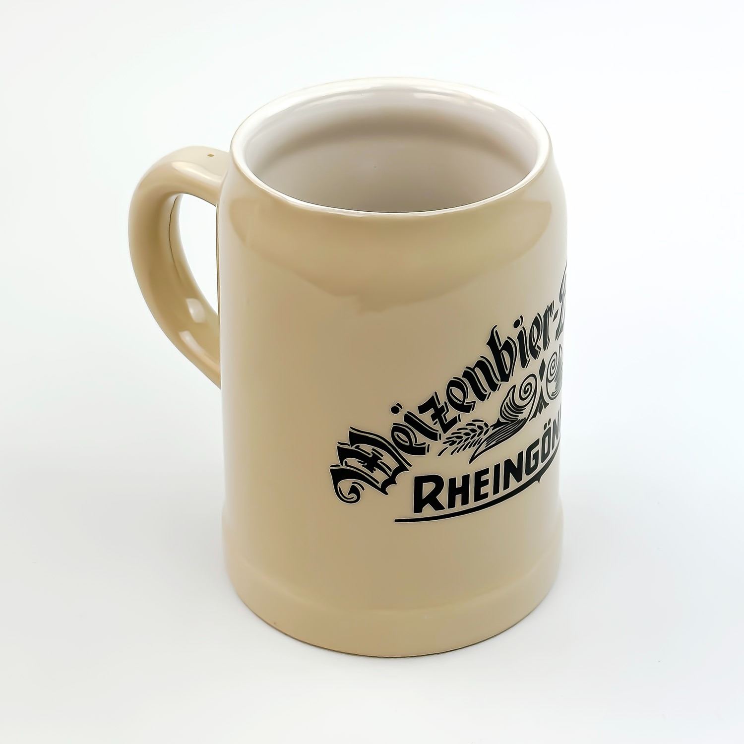 #8285 - VINTAGE WEIZENBIER-BRAUEREI RHEINGONHEIM BEER STEIN BAR DECOR. MARZI REMY MARK ON THE SIDE OF THE STEIN. MEASURES: 5.25” (13.5 CM) TALL BY 4” (10 CM) BASE DIAMETER.