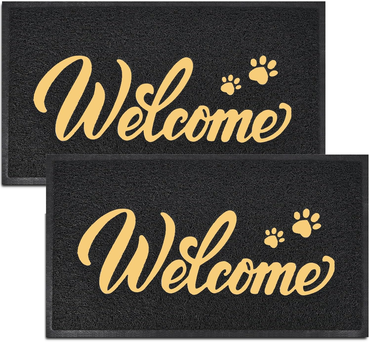 WELCOME MAT OUTDOOR, 2 PACK 32X20 WATERPROOF ALL-SEASON FRONT DOOR MAT OUTSIDE ENTRANCE, ALL-WEATHER QUICK DRYING, LOW PROFILE DOORMAT INDOOR, PATIO PORCH ENTRYWAY MAT, BLACK-GOLD