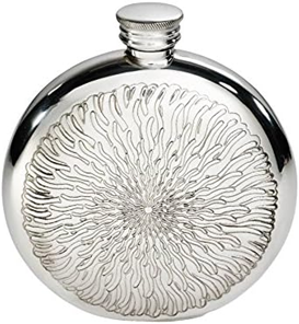 WENTWORTH PEWTER - SUNFISH ROUND PEWTER FLASK, SPIRIT FLASK, 6OZ CAPACITY