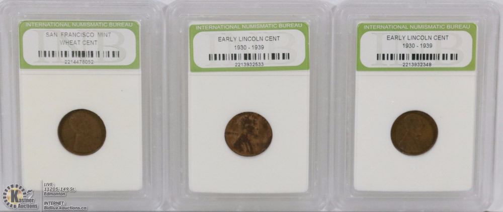 SLABBED 1937 , 1947 S SANFRANCISO MINT 1938 INTERNATIONAL NUMISMATIC BUREAU