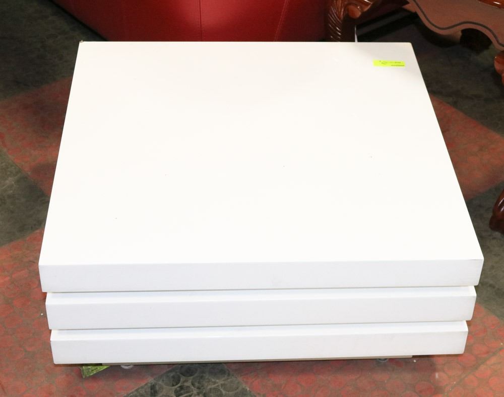 WHITE 3 TIER ROTATING SHOWHOME COFFEE TABLE