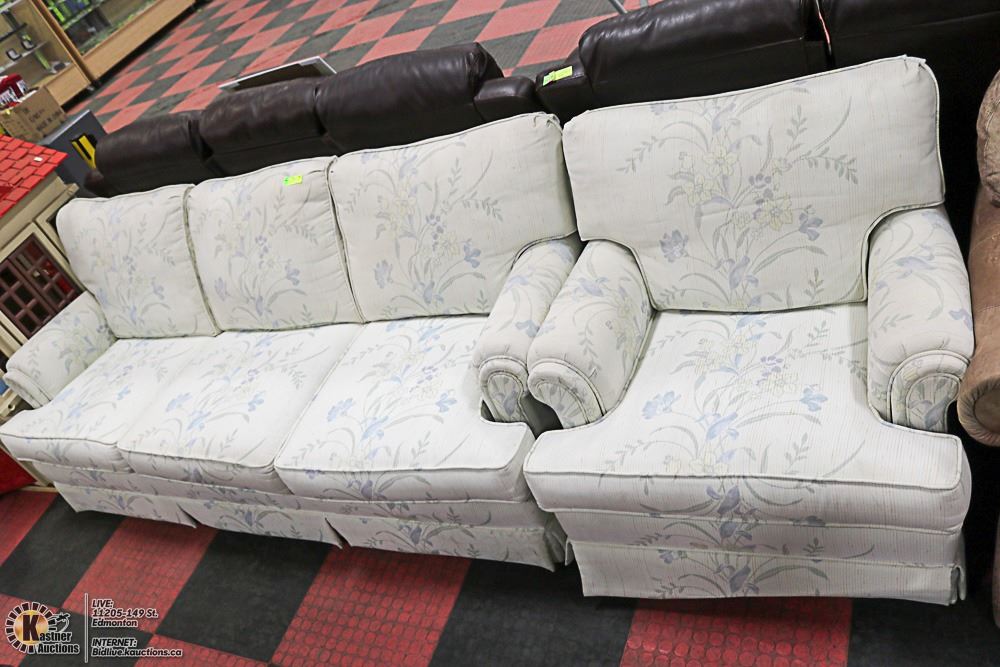 WHITE AND BLUE SOFA & CHAIR FISCHERS FURNITURE