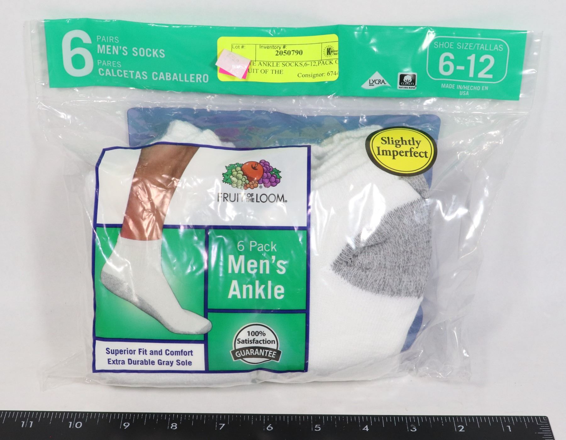 WHITE ANKLE SOCKS,6-12,PACK OF 6,FRUIT OF THE