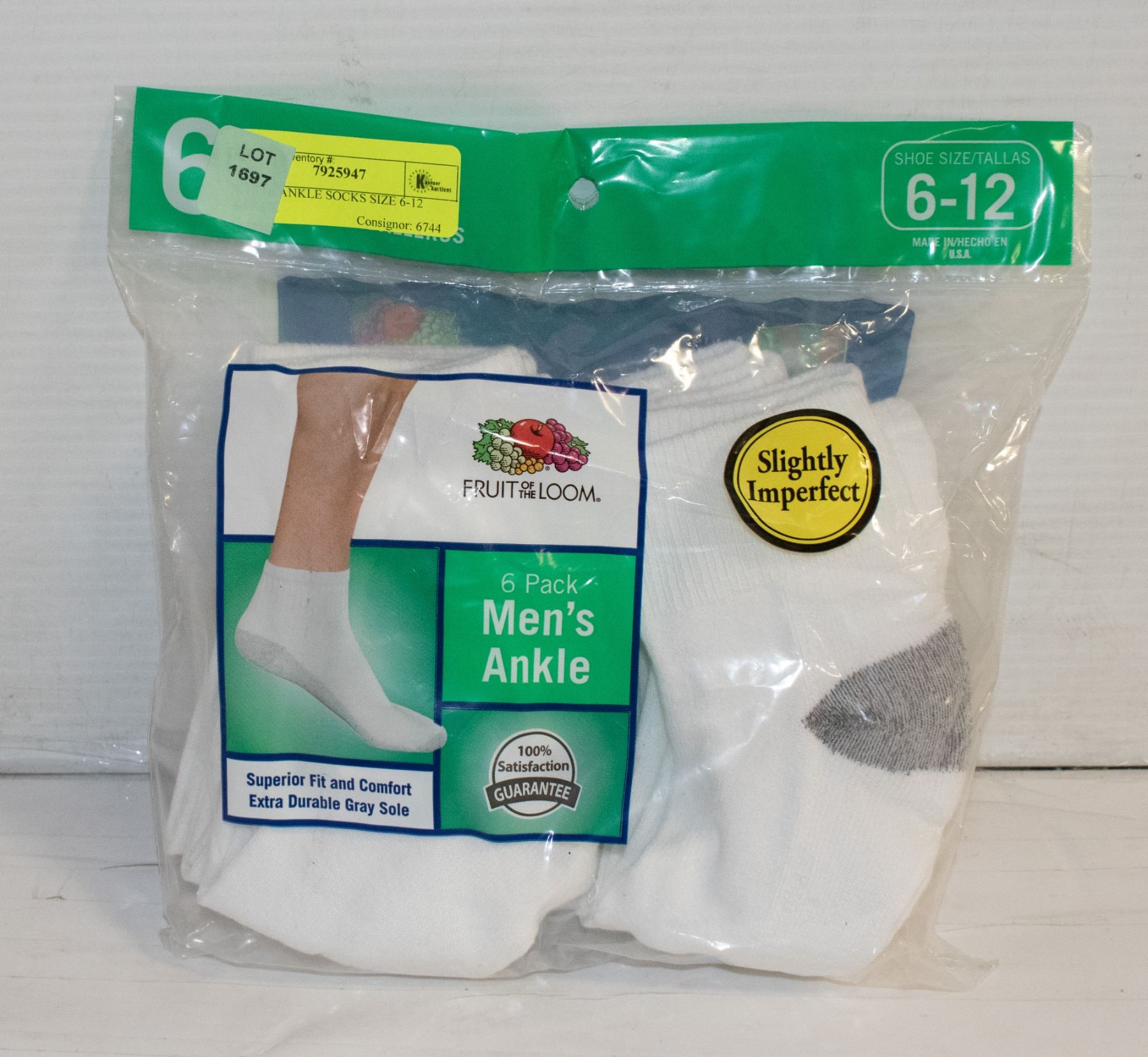 WHITE ANKLE SOCKS SIZE 6-12 6-PACK
